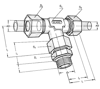 Swivel branch tee (Male stud thread, metric)
