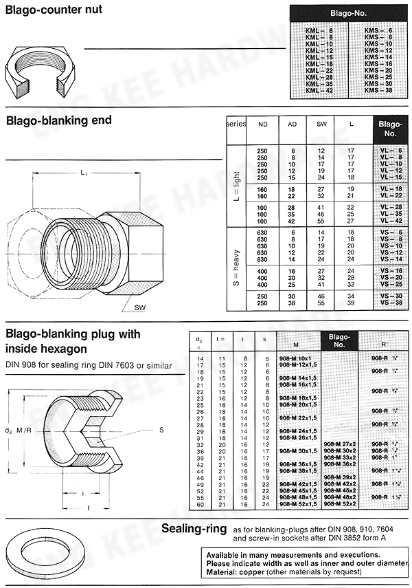Blago-counter nut / Blago-blanking end / Blago-blanking plug with inside hexagon