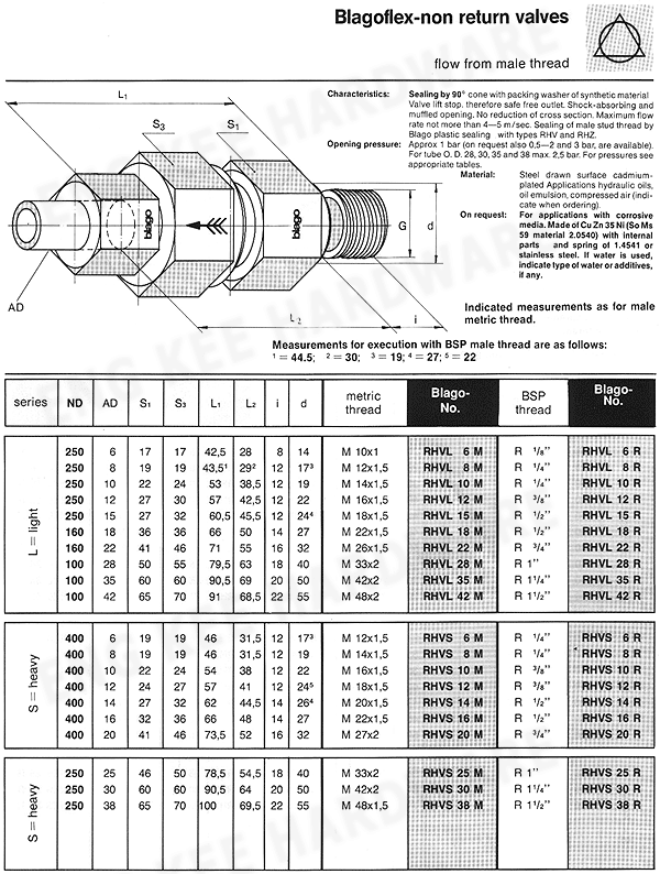 Blagoflex-non return valves (flow from male thread)