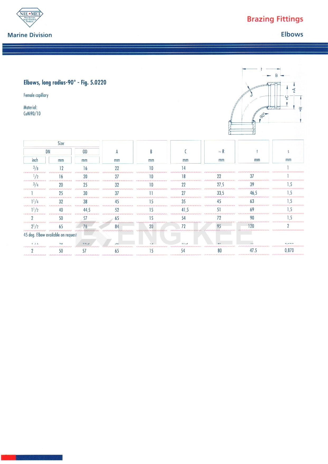 Silver Brazing Fittings (Elbows, Long Radius – 90 degrees)